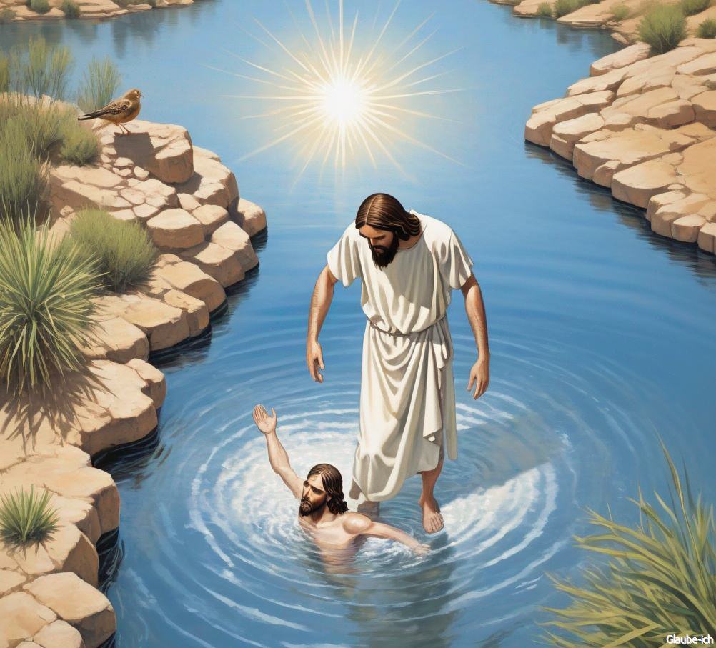 Als Jesus in den Jordanfluss stieg, um von Johannes getauft zu werden, geschah etwas Außergewöhnliches. Matthäus beschreibt es in Kapitel 3, Verse 16 und 17: "Und als Jesus getauft war, stieg er alsbald herauf aus dem Wasser; und siehe, da tat sich ihm der Himmel auf, und er sah den Geist Gottes wie eine Taube herabsteigen und auf ihn kommen. Und siehe, eine Stimme vom Himmel herab sprach: Dies ist mein lieber Sohn, an dem ich Wohlgefallen habe."