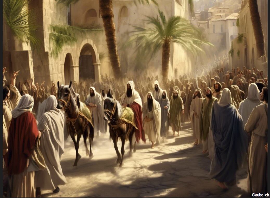 Der Palmsonntag ist ein bedeutender christlicher Feiertag, der eine entscheidende Phase im Leben Jesu markiert. An diesem Tag wird die triumphale Einzug Jesu in Jerusalem gefeiert, als er auf einem Esel in die Stadt einfuhr und von einer begeisterten Menge mit Palmwedeln und Hosanna-Rufen empfangen wurde. Dieses Ereignis symbolisiert Jesus' Präsenz als Messias und König, der von den Menschen als Hoffnungsträger und Erlöser empfangen wurde.