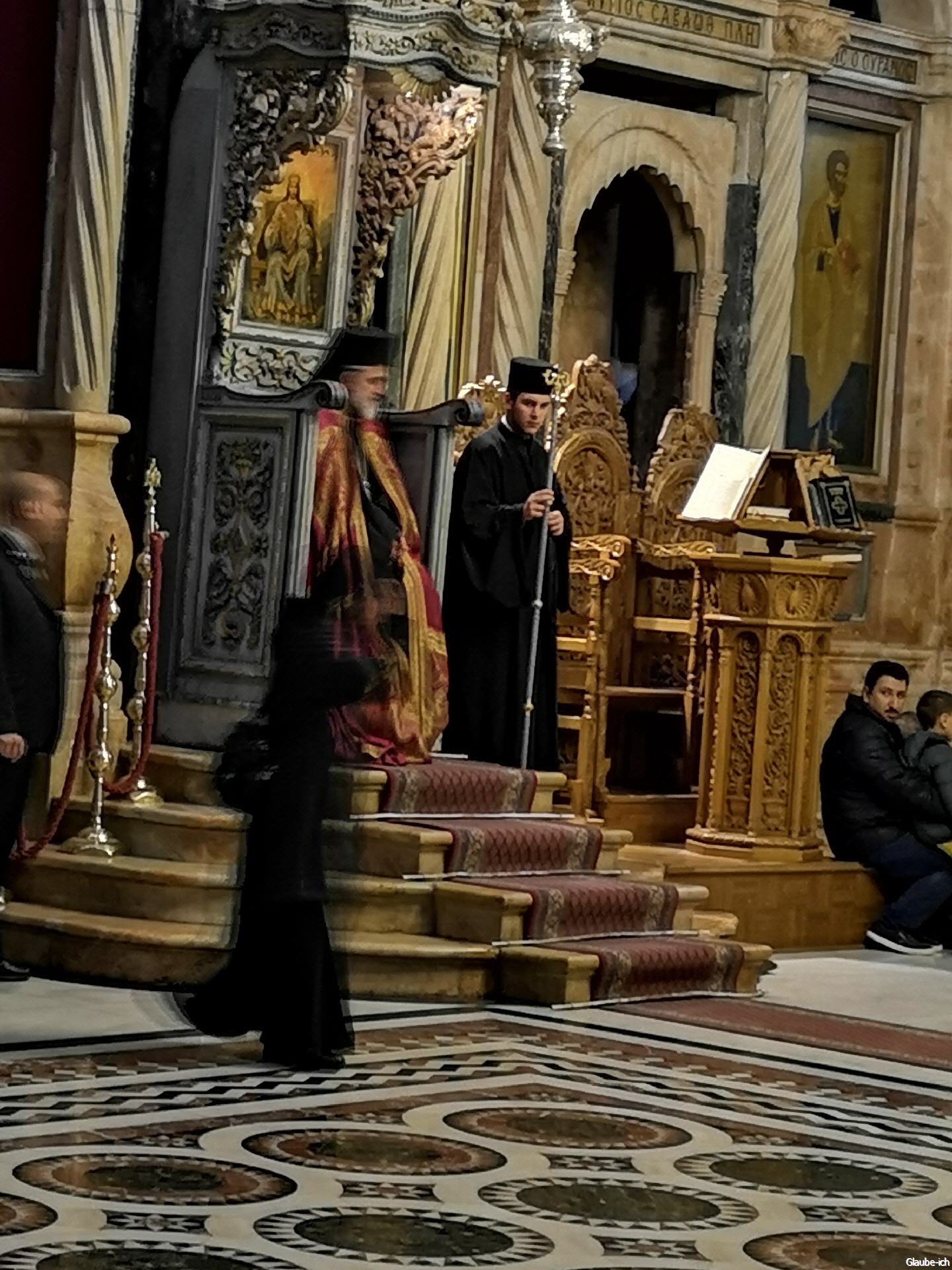 Die griechisch orthodoxe Kirche feiert ihre Heilige Messe gegenüber dem heiligen Grab. Sie sind auch zuständig für den Ablauf der großen Pilgergruppen. Lassen Sie sich verzaubern und besuchen auch mal eine Heilige Messe innerhalb der Grabeskirche.
