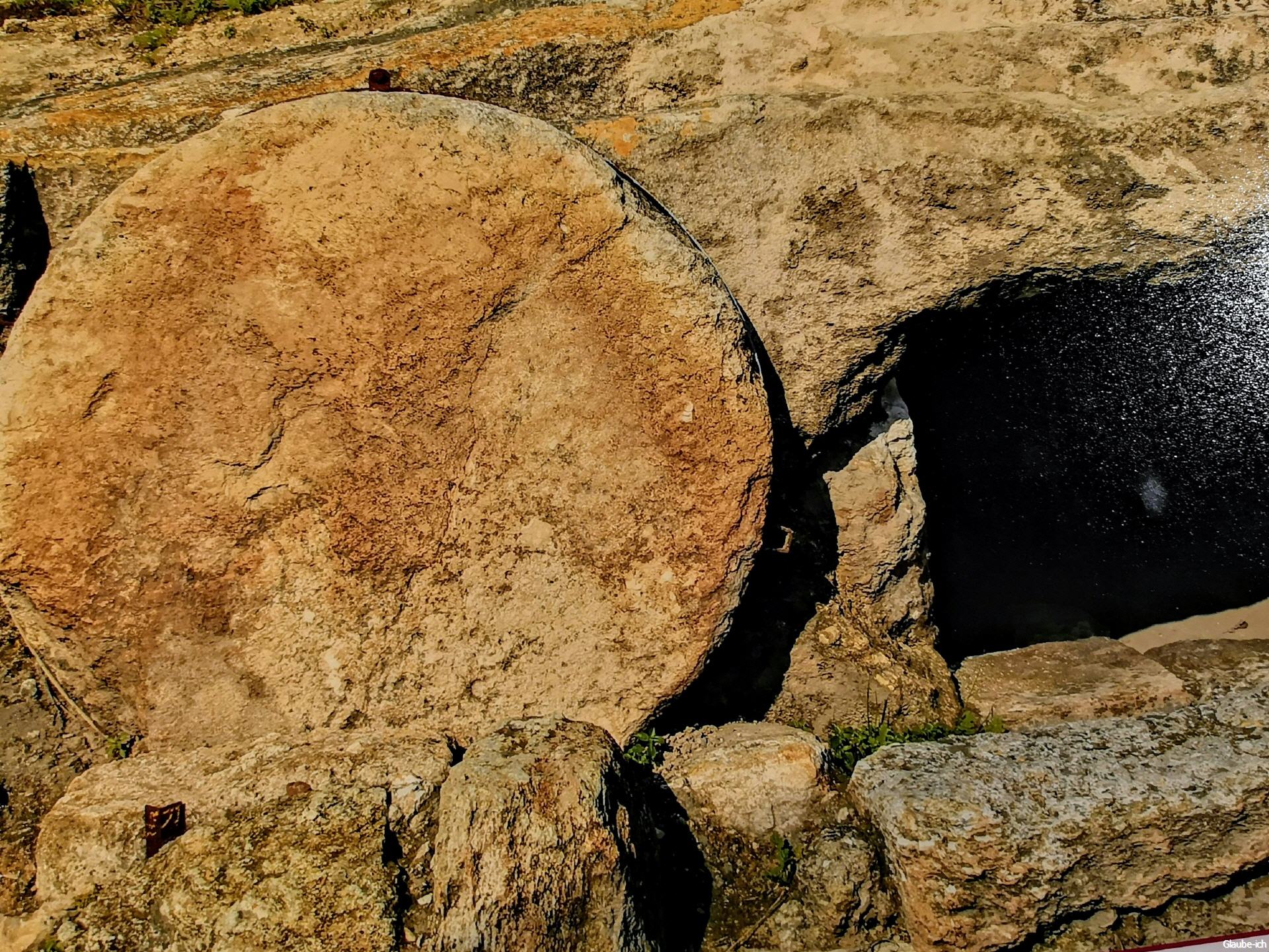 Als der Sabbat vorüber war, kauften Maria aus Magdala, Maria, die Mutter des Jakobus, und Salome wohlriechende Öle, um damit zum Grab zu gehen und Jesus zu salben. Am ersten Tag der Woche kamen sie in aller Frühe zum Grab, als eben die Sonne aufging. Sie sagten zueinander: Wer könnte uns den Stein vom Eingang des Grabes wegwälzen? Doch als sie hinblickten, sahen sie, dass der Stein schon weggewälzt war; er war sehr groß.